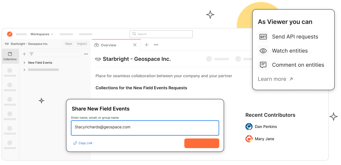 Gather feedback on your APIs, onboard developers quickly, or just showcase your work. Anyone can view, watch, fork, and comment on APIs. A public workspace can help increase adoption of your APIs.