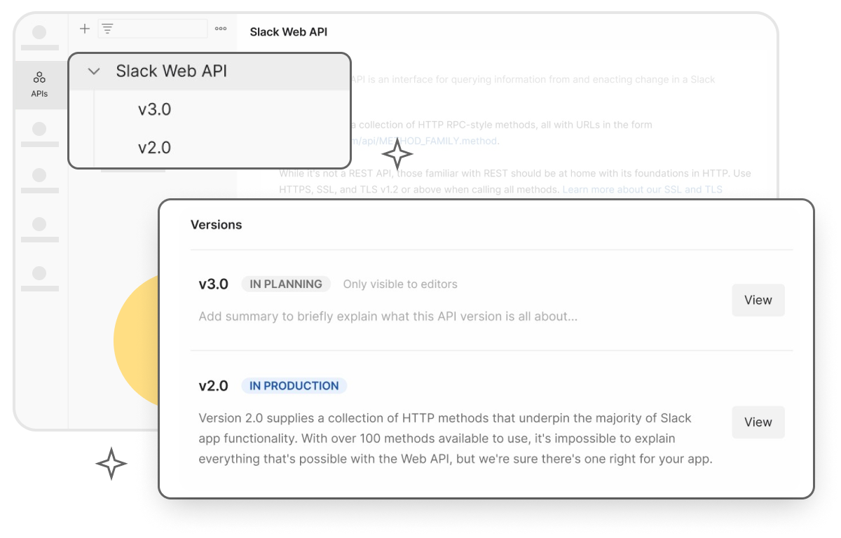 Give your team optimal visibility into your APIs through the Private API Network, a central catalog that's visible only to your team or organization. The Private API Network supports versioning, which helps you maintain control and manage multiple versions of your APIs in the network. In addition, your APIs can be organized into hierarchical folders to mirror your organizational needs.